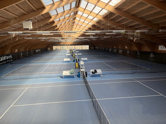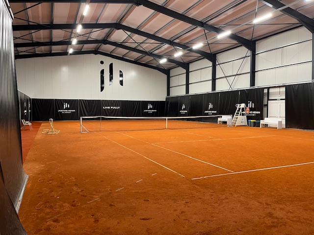 6 terrains durs couverts, 3 terrains en terre battue couverts, 9 terrains en terre battue extérieurs.